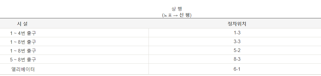 5-1 출구부터 8번 출구까지의 출구는 1-1 출구로 알려져 있습니다. 이 출구도 하행 출입문과 가까운 위치에 있습니다.